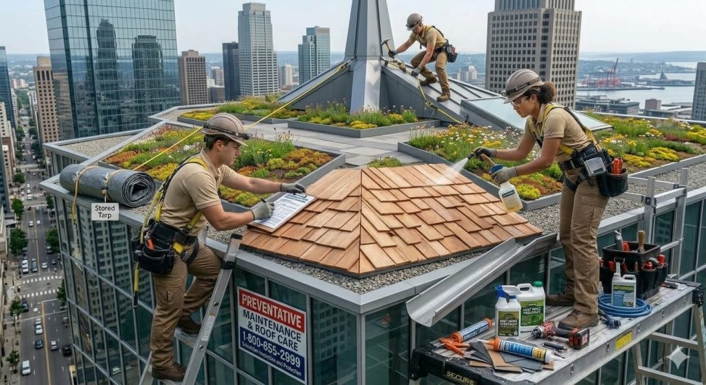 From Commercial Roofing to Emergency Roofing Services, our toolkit is equipped for any challenge. We handle everything from a new Roof Installation to a complete Roof Replacement using premium materials like Single Ply Roofing, Built-Up Roofing (BUR), and Copper Roofing. We are even equipped for specialized projects like Vegetative / Green Roof systems, ensuring your property is protected by the best in the business.